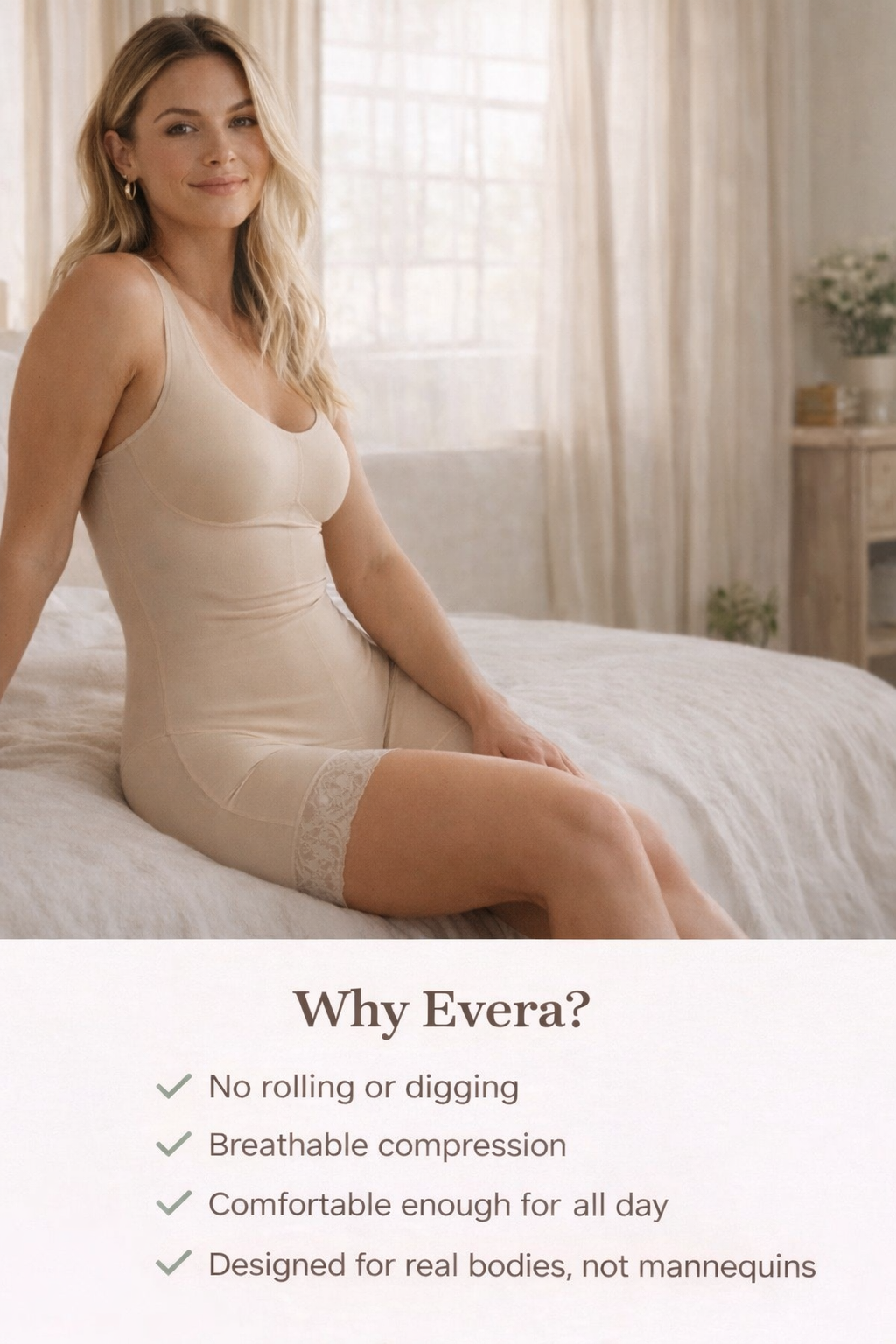 Evera shapewear is created to support your natural shape without discomfort. Thoughtfully designed pieces that move with you, feel breathable all day, and let you show up confidently — no squeezing, rolling, or restriction.
